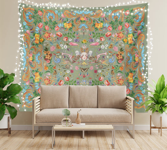 Sage Green Floral Cottagecore Sun Tapestry