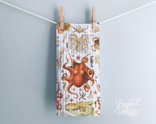 Vintage Octopus & Marine Life Hand Towel