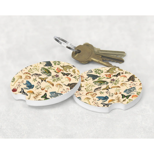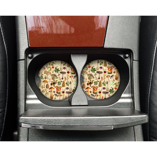 Forest Frogs & Mushrooms Sandstone Car Coaster