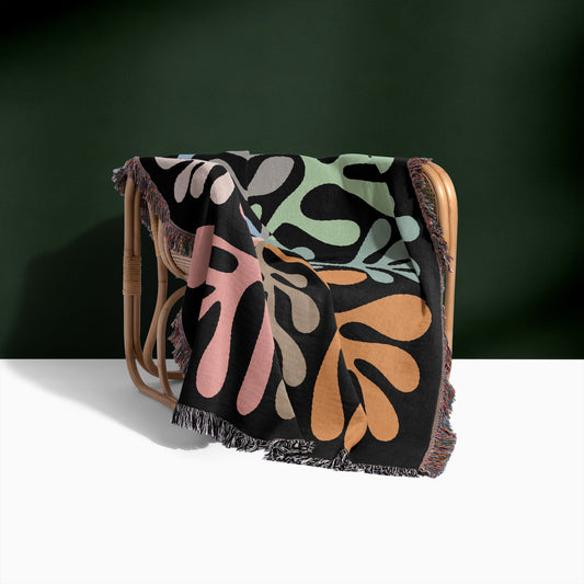 Matisse Neutral Leaf Print Woven Blanket in Black
