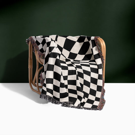 Black & White Checkered Woven Blanket