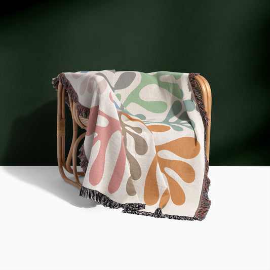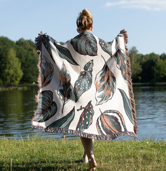Matisse Neutral Leaf Print Woven Blanket