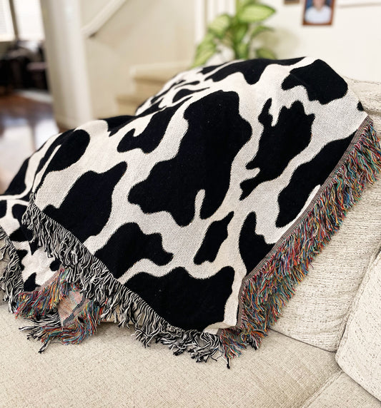 Cow Print Picnic Woven Blanket