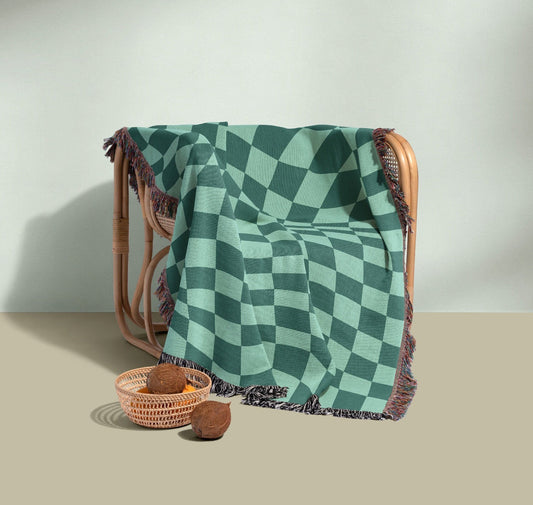 Green Checkered Woven Blanket