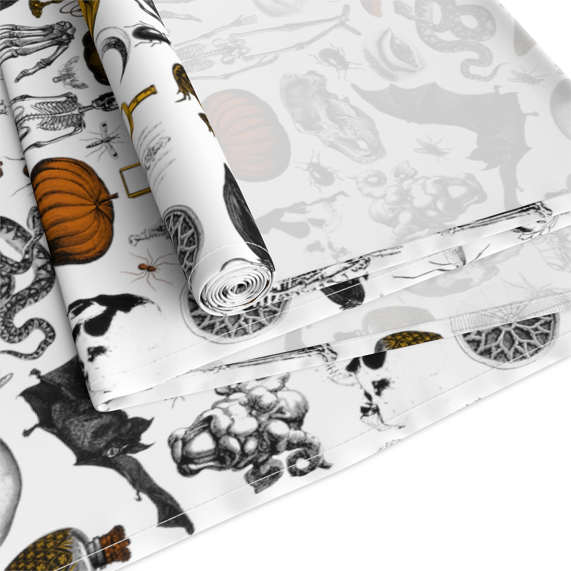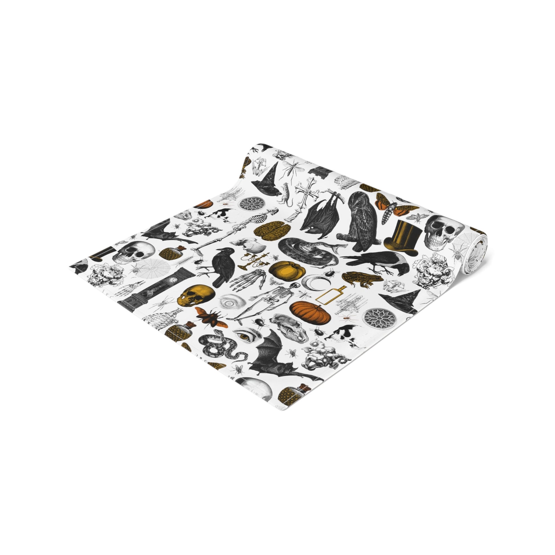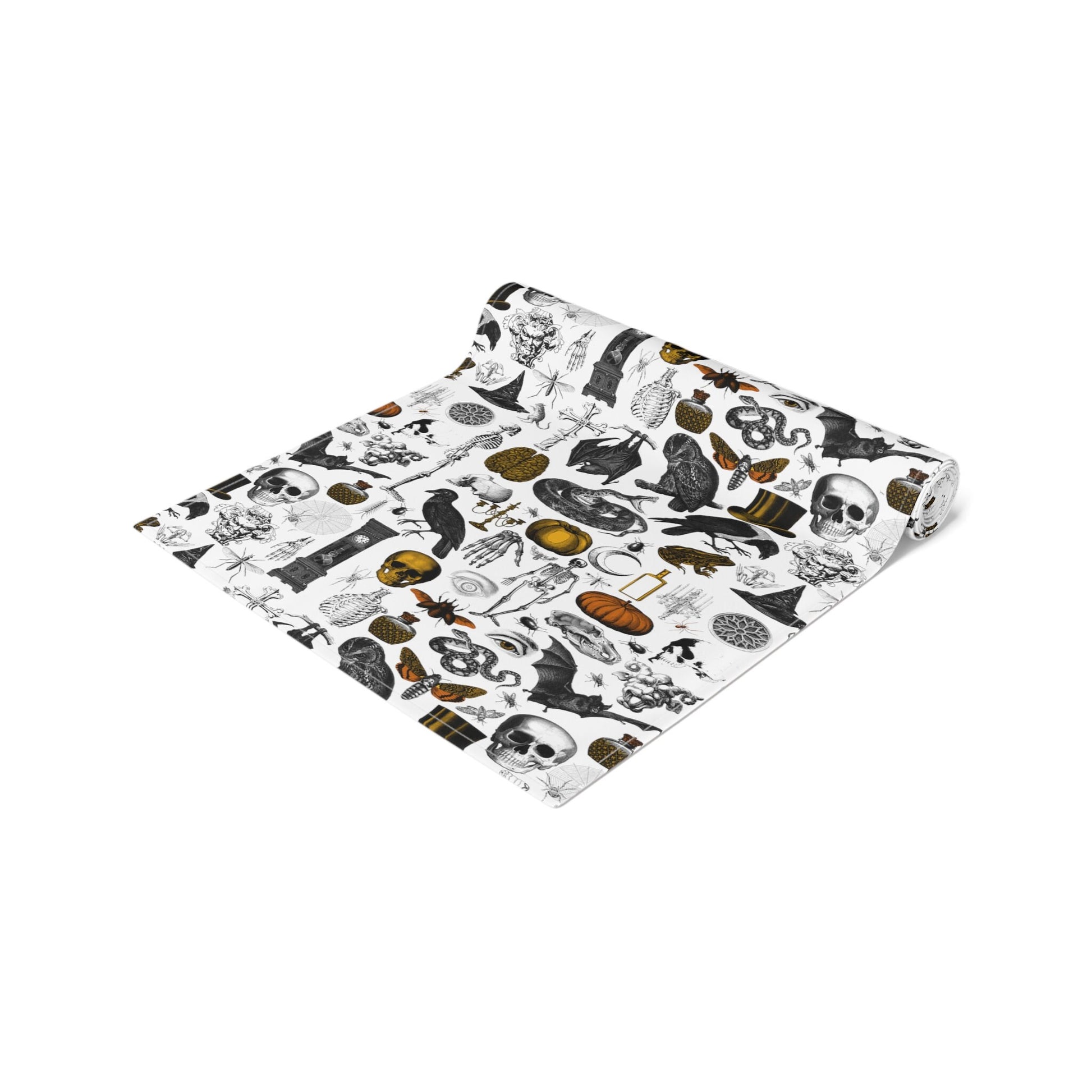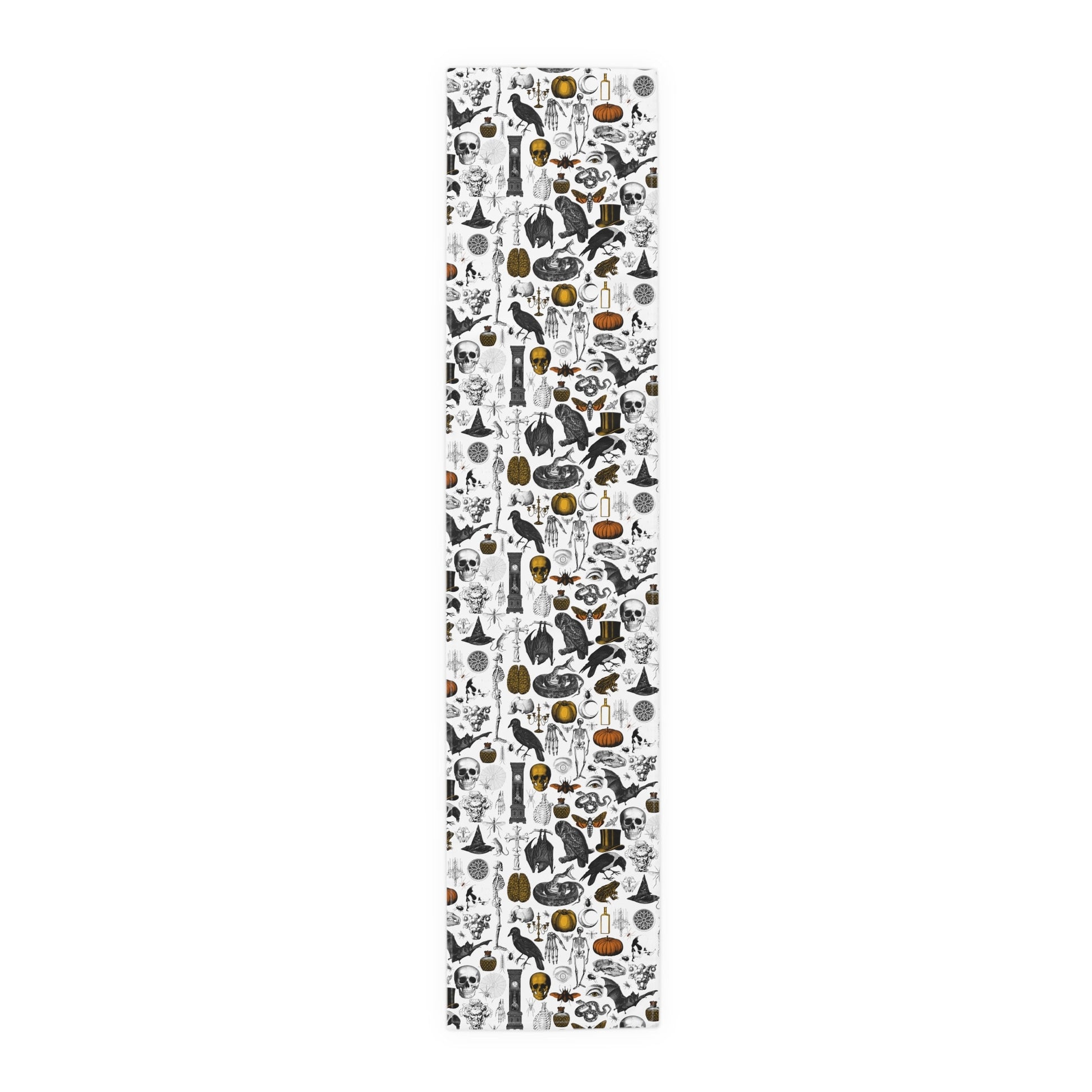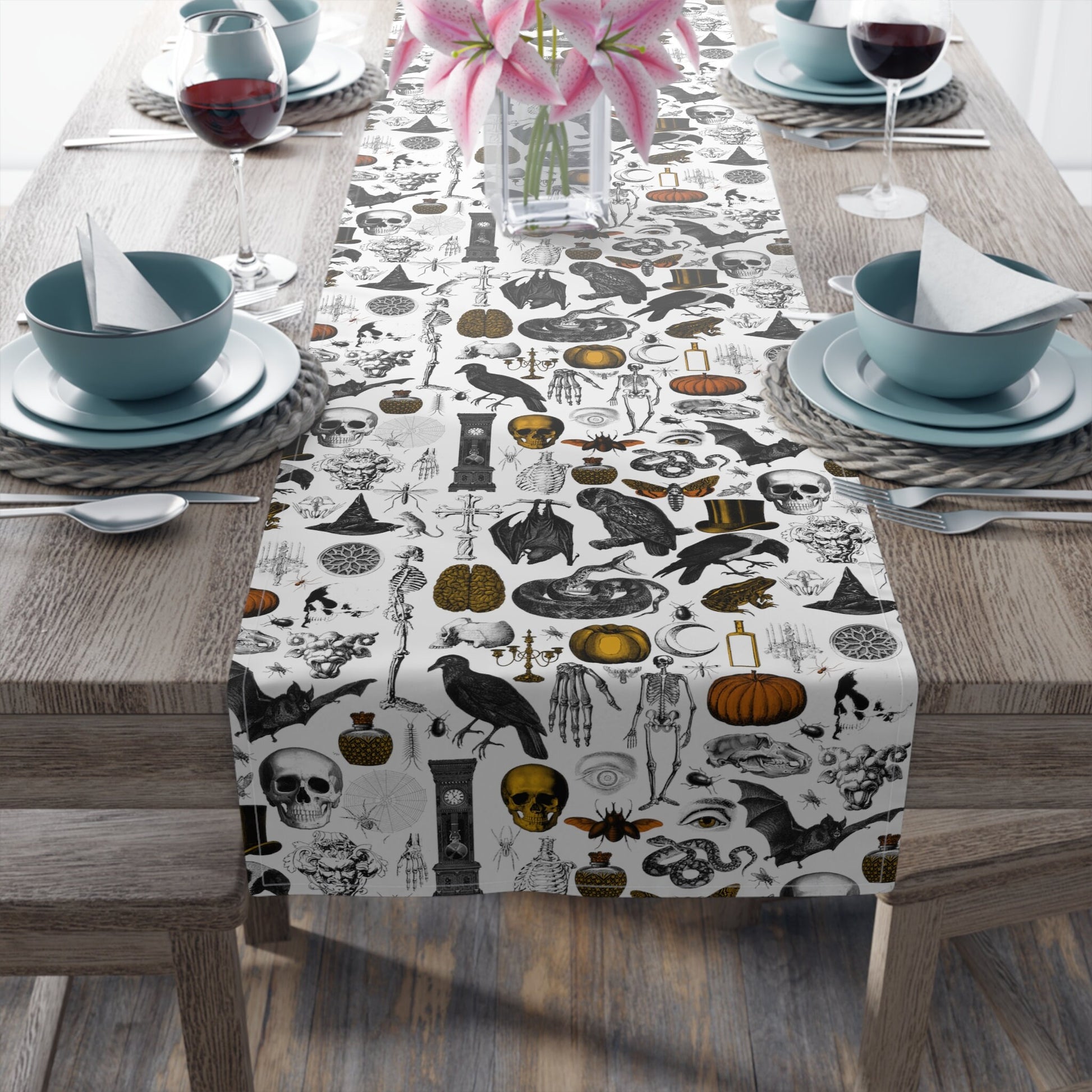 Instant dark academia decor with this white gothic table runner. The ideal Halloween table decoration.