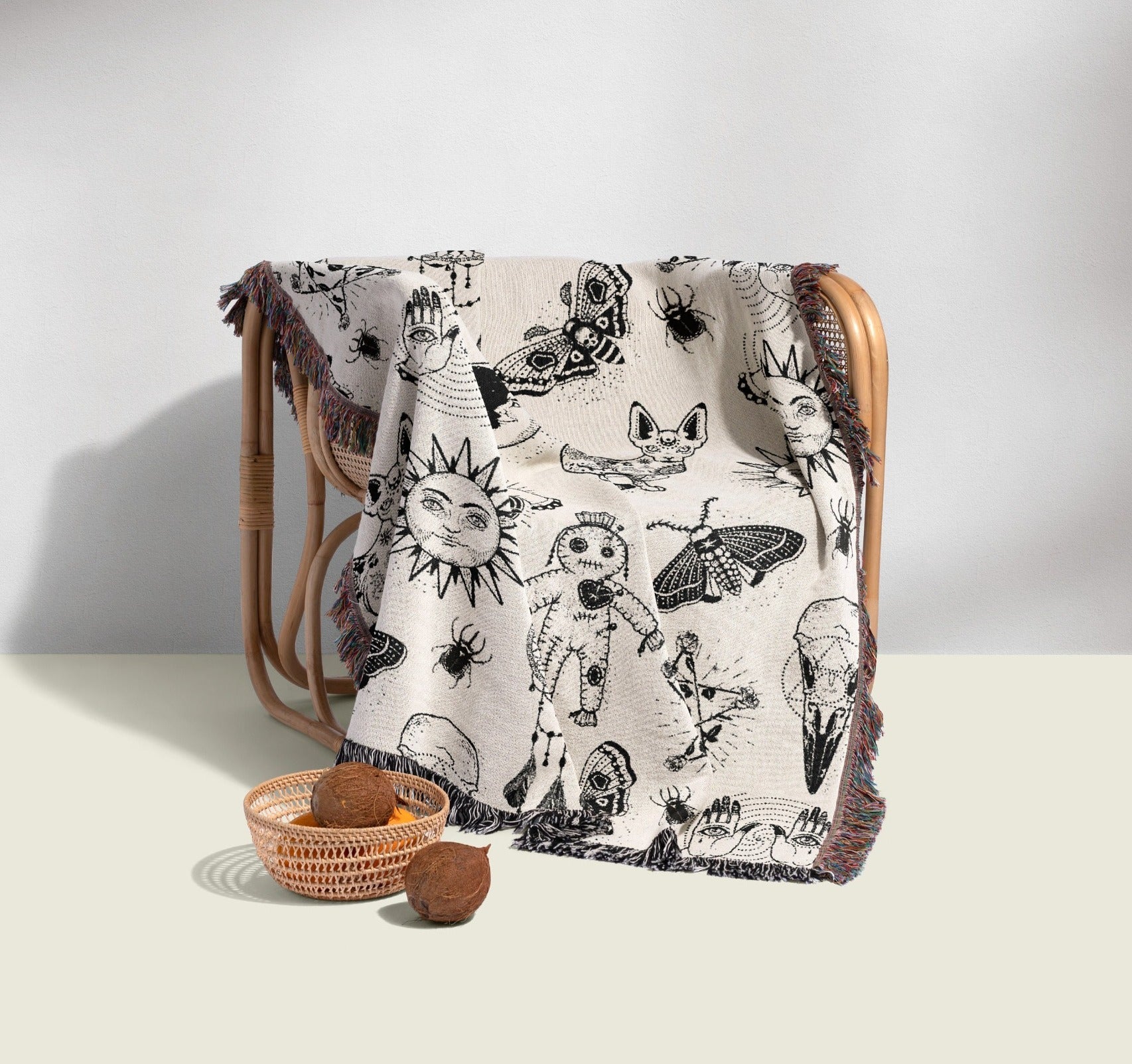 This is the gothic witch illustrations throw blanket that is sure to bring a touch of dark academia to any room!