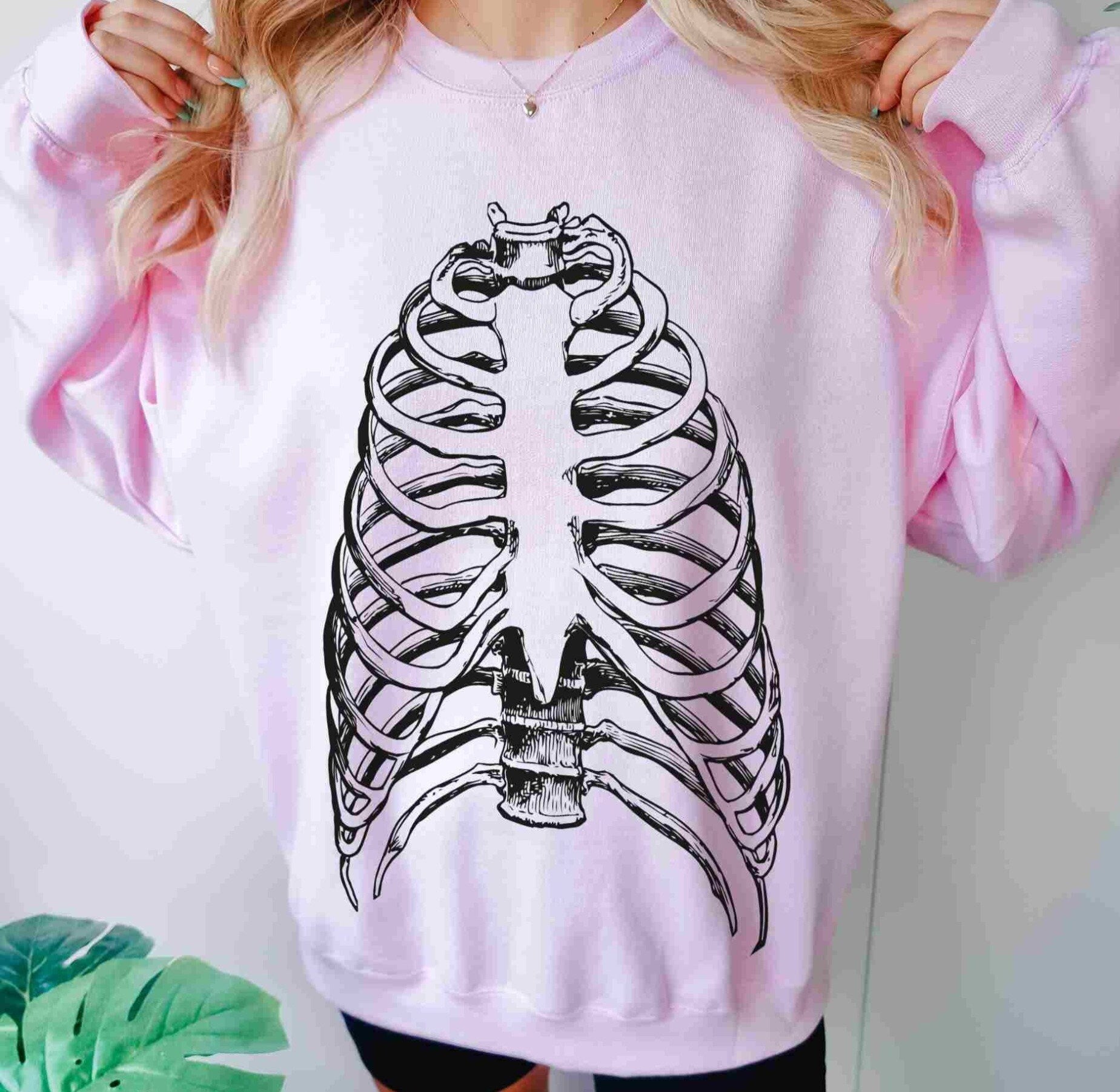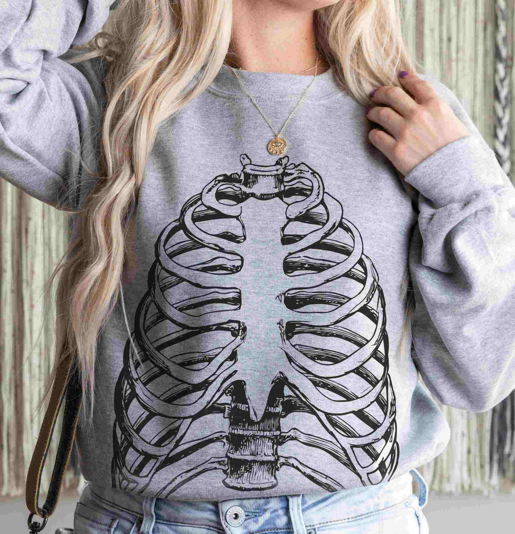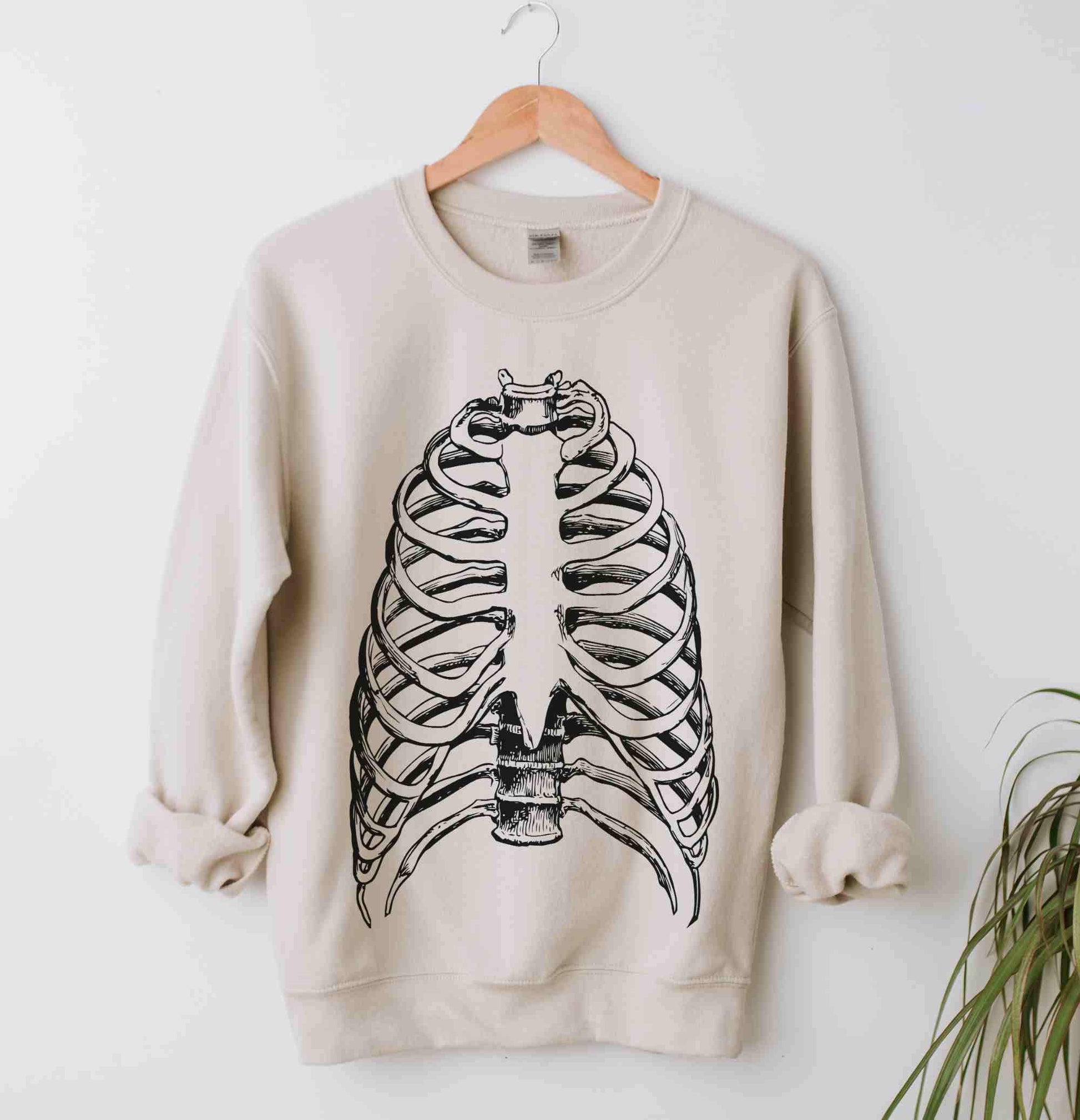 This vintage retro style skeleton ribcage sweatshirt, get it for Halloween and then continue rocking the daerk academia vibes. These are a loose fit but you can easily size up one or two for a more oversize fit.